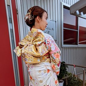 三輪玲楠ちゃんが成人式の前撮りの振袖姿を見せに来てくださりました♡