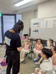 楽屋係、舞台袖係、ゲスト係のお母様たちは裏方として、メイク、着替えだけではなく、出演者のメンタル面までみんなを大切に見てくださり、緊張する子供達を送り出してくださり、応援してくださました。本番を正面から観ていただくことはできませんでしたが、舞台袖、楽屋は、皆の想いが詰まった最高の特等席だと思っていただければと何人かのお母様にお話させていただきました。